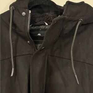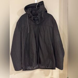ANDREW MARC Palmer Faux Fur Trim Wool Blend Hooded Jacket Mens XL