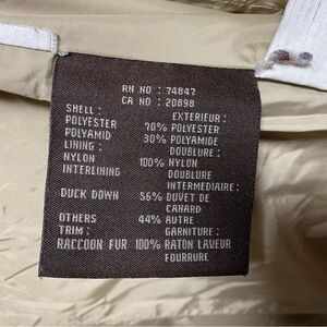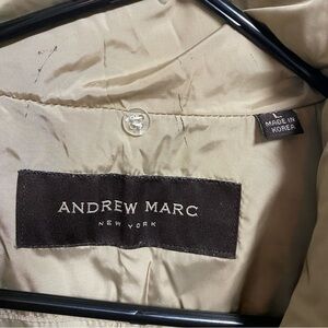 ANDREW MARC Womens Parka Coat Large Tan Down Fill Long Puffer Fur Jacket FLAWS