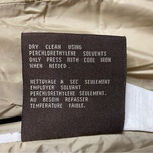 Flaws: zipper isn’t working correctly, had some spots that need to be dry cleaned, a small two inch l rip on the inside, left pocket had a hole on the inside (all flaws are pictured)