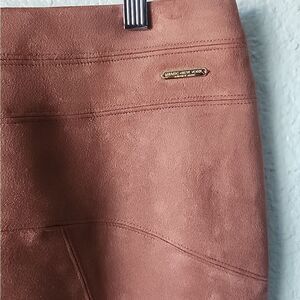 ANDREW MARC faux suede Red Pencil Skirt full control waistband maeve color