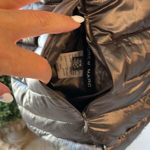 ANDREW MARC women’s REVERSIBLE metallic gray blk puffer / plush hooded jacket M