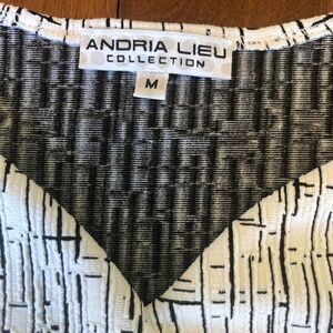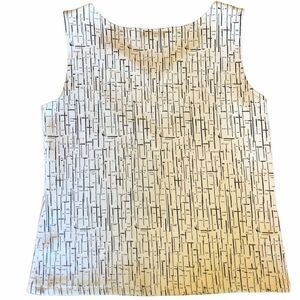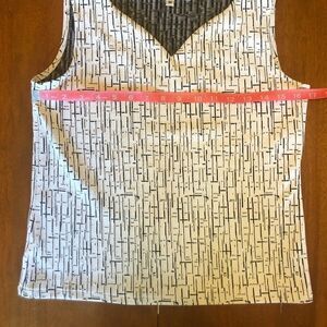Andria Lieu Tank Top Blouse, V-neck, Textured Fabric, Black/White Design, Armpit to armpit: 17", Length: 21" Size M