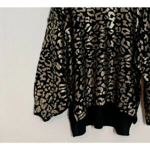 ANDTHEWHY Womens Plus Size 2X Sweater Foil Leopard Print Long Sleeve Pullover