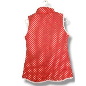 Womens Pink 100% Cotton Poladot Full Zip Puffer Vest With Pockets sz S Feminine