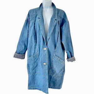 ANDY JOHNS VTG 80/90s Oversized Denim MIDI Duster Blazer Size M Nautical