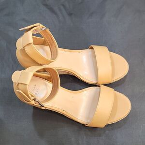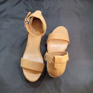 A.NEW DAY WEDGE ESPADRILLE OPEN TOE SANDAL SIZE 91/2 COLOR TAN FEATURING ADJUSTABLE ANKLE BUCKLE STRAP CLOSURE OPEN TOE MADE WITH ALL MAN-MADE MATERIALS LINING BALANCE MAN MADE ALL MAN-MADE MATERIALS LINING BALANCE MAN MADE WEDGE HEIGHT MEASUREMENTS APPROX 3"INCHES THIS ITEMS IS PRE-OWNED EXCELLENT CONDITION WITH ONLY LIGHT SIGNS OF WEAR IF ANY CHECK THE PICTURES