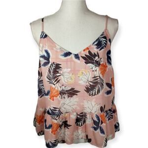 A NEW DAY PINK & ORANGE FLORAL CAMI W/BOTTOM RUFFLE SZ.M EUC