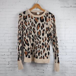 TAN CHEETAH PRINT LONG SLEEVE ROUND NECK SWEATER SIZE SMALL BY A NEW DAY PRE OWNED NO FLAWS