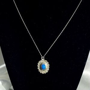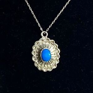 ANE Beautiful robins egg blue turquoise & Sterling 925 Silver pendant with 22” sterling chain. We work hard to find high quality fine jewelry for our buyers. This item is sourced from an estate sale and the former owner had exquisite tastes. The great craftsmanship make this item a true work of art and with its pristine condition It is truly A great value of fine jewelry at costume pricing! Let’s make it yours!