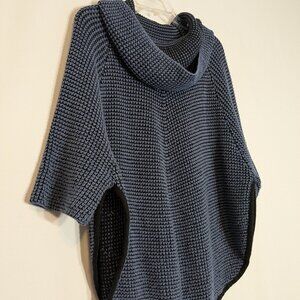 ANGEL APPAREL Black/Blue Cowl Neck Tweed Poncho Pullover Sweater; Size XS