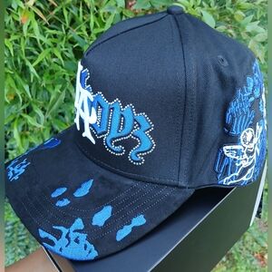 The Dandy x Sadboyz Junior H Angel Azul LA Cap is a stylish and trendy snapback hat designed for men. It features a black color and blue embroidery design to add a unique touch up👌 and a soft suede fabric. With an adjustable snapback closure for a comfortable and customizable fit. The hat is adorned with an Angel character design, making it perfect for those who love music and want to add a unique touch to their outfit. This cap is a must-have accessory for any fashion-forward individual looking to express their individuality and style.