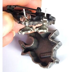 Materials: pewter Length: 1.5 in Clasp: butterfly back earrings, brooch pin with safety clasp Signed? yes , Torino Excellent vintage condition