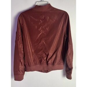 This classic fit jacket has a zip closure with an accent zipper detail that gives it a unique touch. Perfect for fall and spring occasions, this jacket is a must-have for any stylish woman's wardrobe. Get your hands on this Angel Kiss Los Angeles bomber jacket, size large, and make a statement wherever you go!