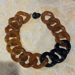 • Fabulous Vintage 80s-90s Angela Caputi Made-in-Italy Extra Large Flat Translucent Amber and Black Contrasting Resin Chain Link Choker Necklace