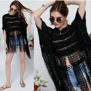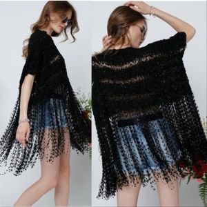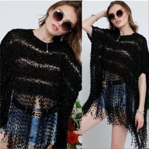 BLACK POPCORN KNIT TOP WITH FRINGE