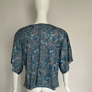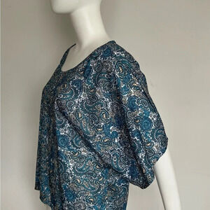 ANGELA Womens Sz Large Paisley Floral Dolman Short Sleeve Top NWOT