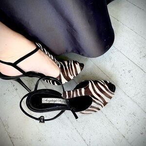 ANGELEIGH ANASTASIO Italy zebra print cowhide leather peep toe, sling back, high heels shoes