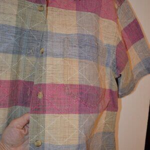 ANGELIQUE Cotton Button-Down Shirt Grey-Red-TanTextures Pattern Round Bottoms S