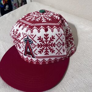 ANGELS Anaheim MLB Baseball Snowflakes Hat Cap Arco Red White Sixth Man