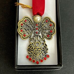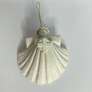 Jeweled angel 2 1/2” with red ribbon bookmark, 2 1/2” glass beaded cross, shell angel 3” ornament dated 1993 and 5 1/2” X 3 1/2” Last Supper small dish/tray. Faith Cross hangar. All excellent new condition