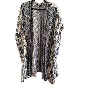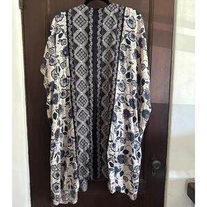ANGIE | Black and blue Floral Open Front Cream and Blue Floral Kimono | Small