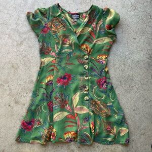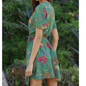 ANGIE GREEN MINI WRAP DRESS size small tropical vacation summer preloved