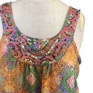 ANGIE Maxi Sleeveless Maxi Dress Beads Sequins Embroidery Mixed Print M 148J