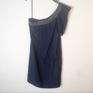 Cute elastic drop waist versatile tunic dress one shoulder with split & studs. Can be worn a tunic top or mini dress.