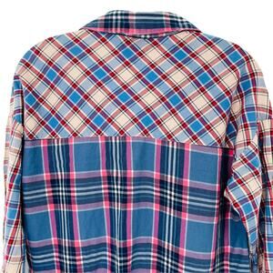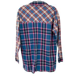 ANGIE Shirt S Blue Pink Mixed Plaid Flannel Button Down Long Sleeve