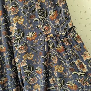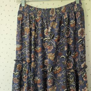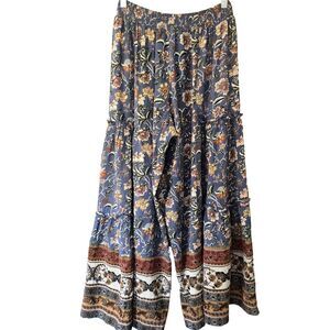 ANGIE Wide Leg Crop Pants S Blue & Multicolor Floral Pull-On Palazzo Boho Beachy