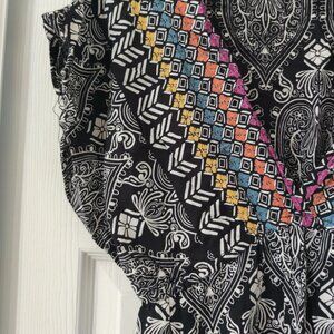 ANGIE Women's Multi-Color Geometric Print Boho V-Neck Mini Dress Size Medium