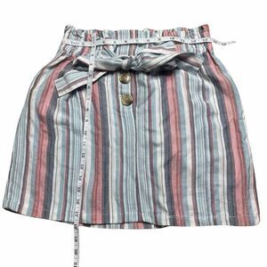 ANGIE Women’s Multicolor Striped Paperbag Tie Belt Rayon Mini Skirt Size XL