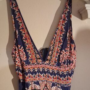 ANGIE Navy and Orange Bohi Maxi Dress Size Medium