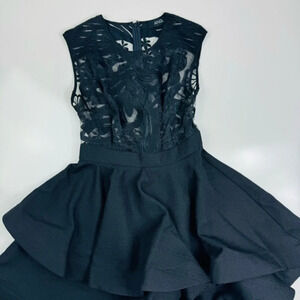 ANGL Black Sheer Lace Embroidered Fit And Flare Dress Size Small