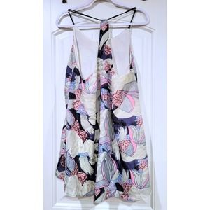 ANGL Cream Purple Blue Pink Printed Sleeveless Mini Dress Sz Medium M
