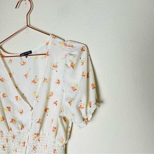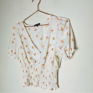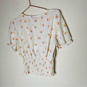 ANGL Heart N Hip White Floral Puff Sleeve Top Large (Junior)