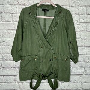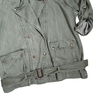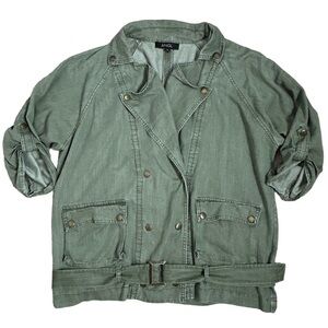 ANGL Military Green Chambray Double Breasted Belted Jacket