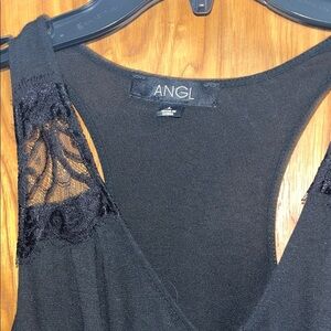 ANGL size Large Black Lace Detail Women's Top