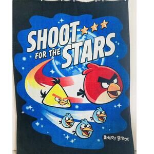 ANGRY BIRDS Large Plush Throw Blanket Shoot for Stars Blue Yellow Red 80 X 60”
