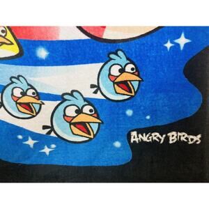 ANGRY BIRDS Large Plush Throw Blanket Shoot for Stars Blue Yellow Red 80 x 60”