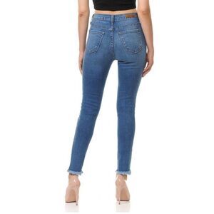 ANGRY RABBIT makes these Mid/Rise, Frayed/Hem Skinny Jeans in Dark Denim. This is a junior’s size 9 (29). it’s 54% cotton, 23% rayon, 21% polyester and 2% spandex. Machine wash inside out (cold water) and tumble dry. MSRP $70. This is a five-pocket style with a zip fly and button. The waist is 30” in circumference, the inseam is 27” and the rise is 9.5”. These are adorable and NWT!