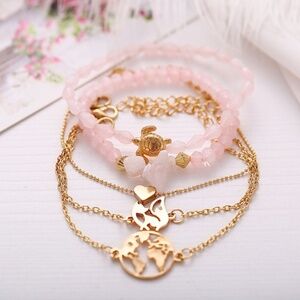 **ANH* 5-Pc Gold x Pink Fashion Bracelet Set