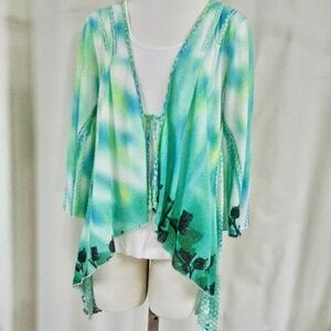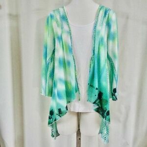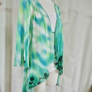 ANIA.A. TURQUOISE WATERCOLOR PRINT 3/4 SLEEVE TIE FRONT LIGHT WEIGHT JACKET S