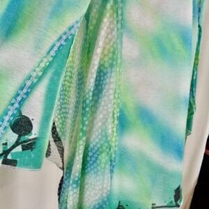 VERY GENTLY WORN AND BEAUTIFUL BLUES & GREENS ON WHITE - 20" PIT TO PIT MEASURED ACROSS THE BACK - 15" ACROSS THE SHOULDERS