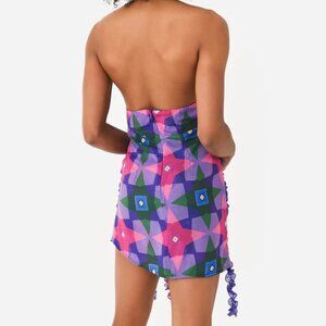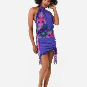 ANIM Abstract Backless Helmet Dress Sheer Ruffle Purple/Pink Womens MD - *NWT!*