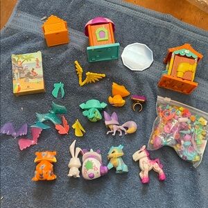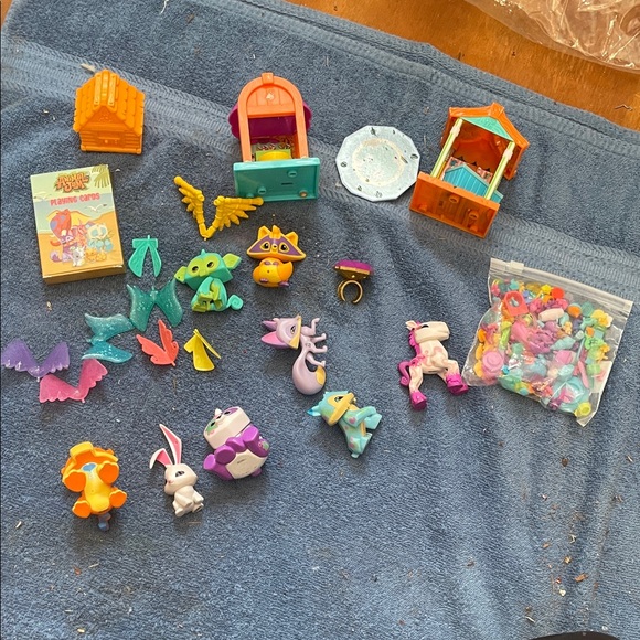 Animal Jam figures and a couple houses. Also a bag of accessories that you can add decorations to them. Deck of playing cards from Animal Jam also included. Smoke free home. These are official Animal Jam figures from Wildworks.