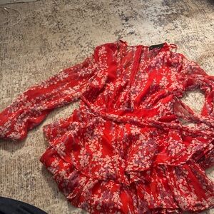 ANIMARI Red Floral Ruffle Romper