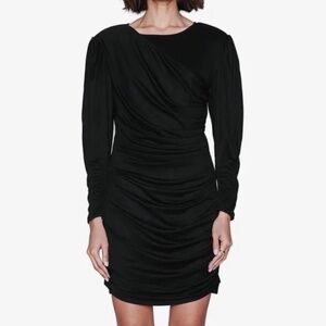 ANINE BING Alaia Long Sleeve Ruched Dress Draping Black