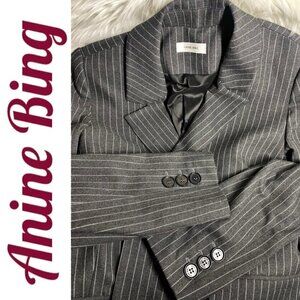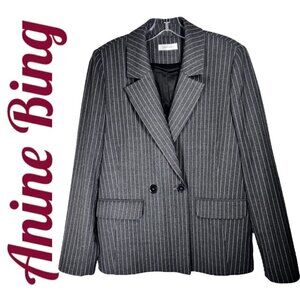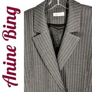 ANINE BING Becky Gray Pinstriped Blazer Double Breasted Menswear, Size 6