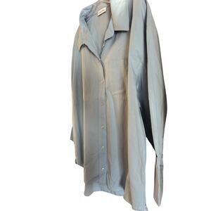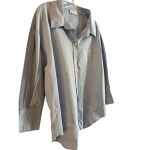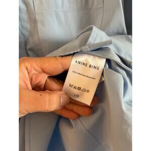 ANINE BING Blue Mika Shirt Cotton Poplin Button Up Size Large Patch Pocket